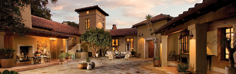 Main House: Enter through gates into inviting hacienda style courtyard with fireplace, cozy sitting area and room for entertaining.